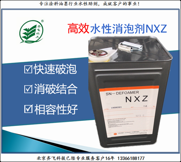 NXZ是矿物油疏水气相白炭黑及金属皂类消泡剂,广泛应用与苯丙乳液,硅丙乳液,全丙乳液,醋丙醋丁乳液等为基础的水性涂料体系。适用于聚乙烯醇类粘合剂。