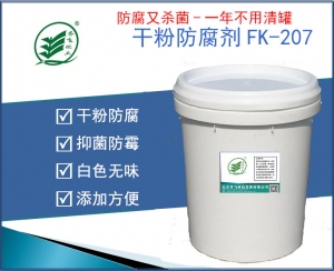 一般使用量在 0.05-2%(重量比),添加量具体取决于产品是否容易受微生物侵蚀和产品的贮存环境。如果已经腐败的体系,可以在腐败的浆料中添加0.2-0.3%的FK-207,经过充分搅拌分散(或先溶解于水,再加入)后,可以有效除去异味,并保存较长时间不再腐败。